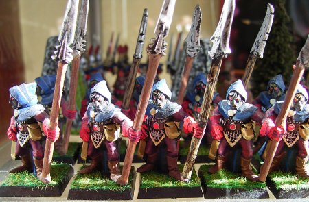 A unit of converted wood elves. From the same army box as above, converted wood elf bowmen to dark elf spearmen.